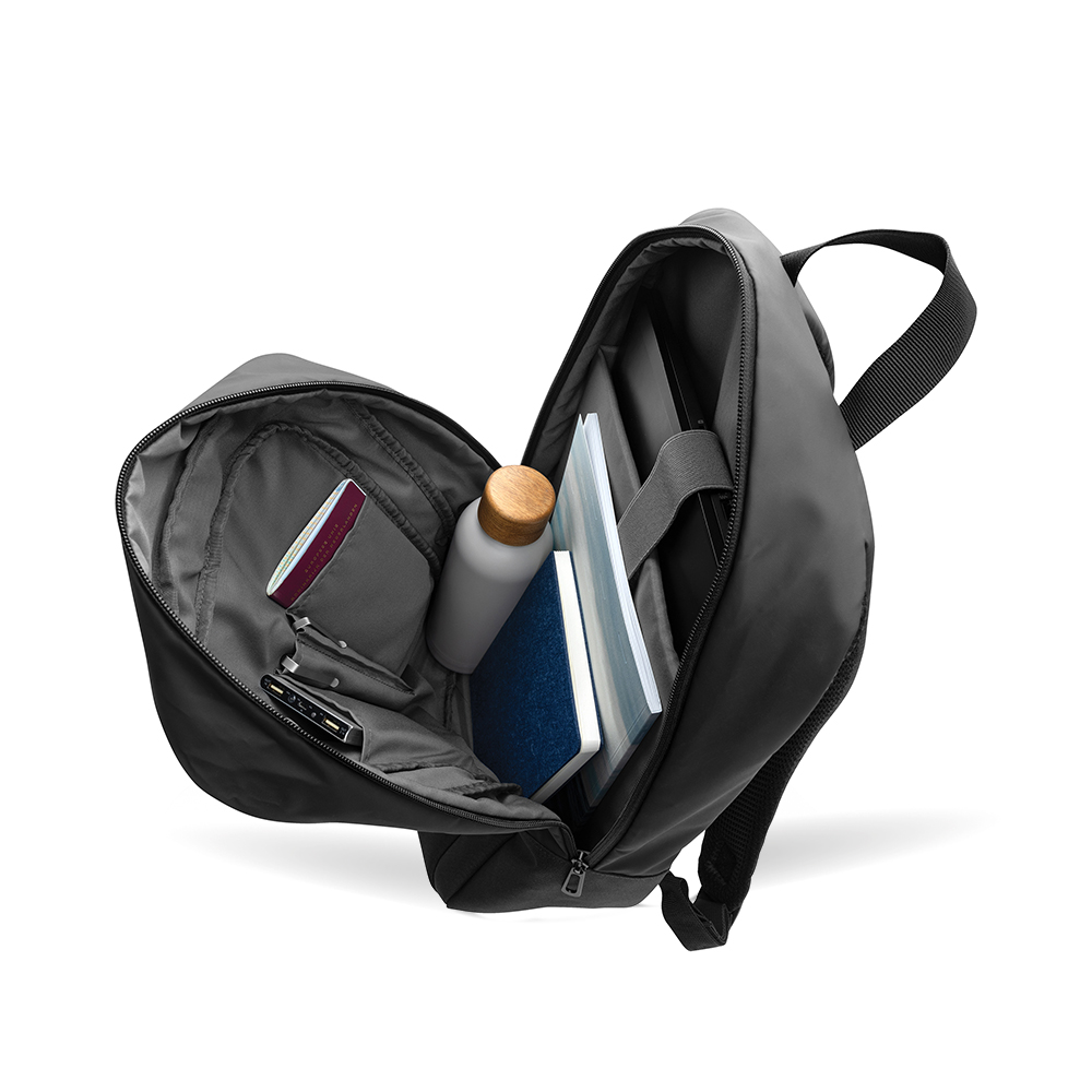 Eenvoudig, stevig en duurzaam. Deze rugzak van gerecycled materiaal biedt ruimte aan een 15.6" laptop en al je dagelijkse essentials. Perfect voor naar school, kantoor of je favoriete werkplek. Ook in jouw stijl te bedrukken? Zeker wij maken ’m helemaal merkwaardig.