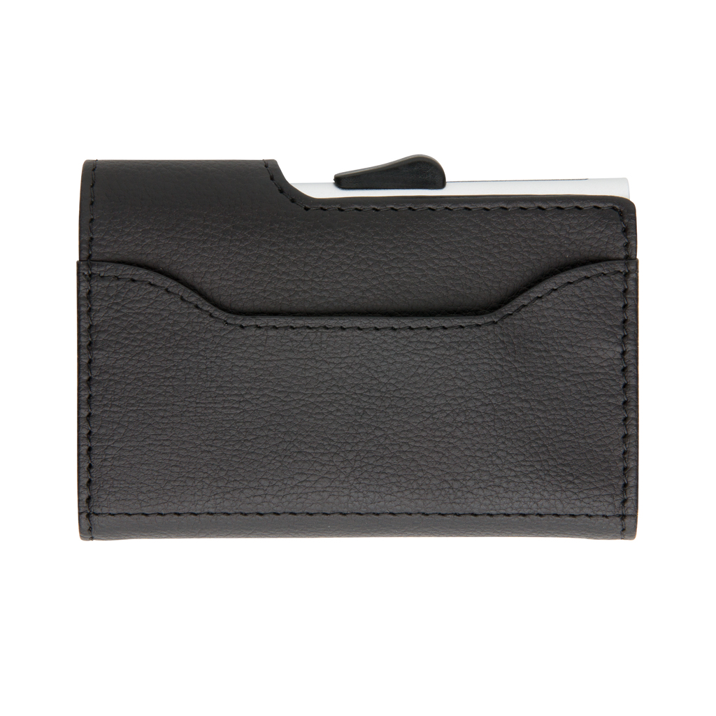 Een stevige kaarthouder en stijlvolle portemonnee in één. De aluminium RFID-bescherming houdt je pasjes veilig, terwijl het zachte omhulsel ruimte biedt voor briefgeld en extra kaarten. Met jouw logo erop wordt het een krachtig visitekaartje voor stijlvol én slim zakendoen.