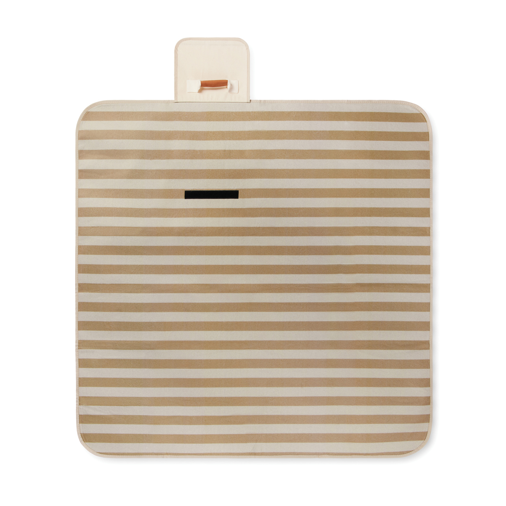 Licht, praktisch en ideaal voor korte uitstapjes. Deze gerecyclede picknickdeken is de kleinste variant uit de serie en heeft een zachte bovenlaag en een waterbestendige onderkant. Makkelijk op te vouwen en mee te nemen, perfect voor een solo-moment in het park of als compact geschenk. Met jouw logo erop wordt het een doordachte herinnering aan de duurzame en dynamische kant van jouw merk.