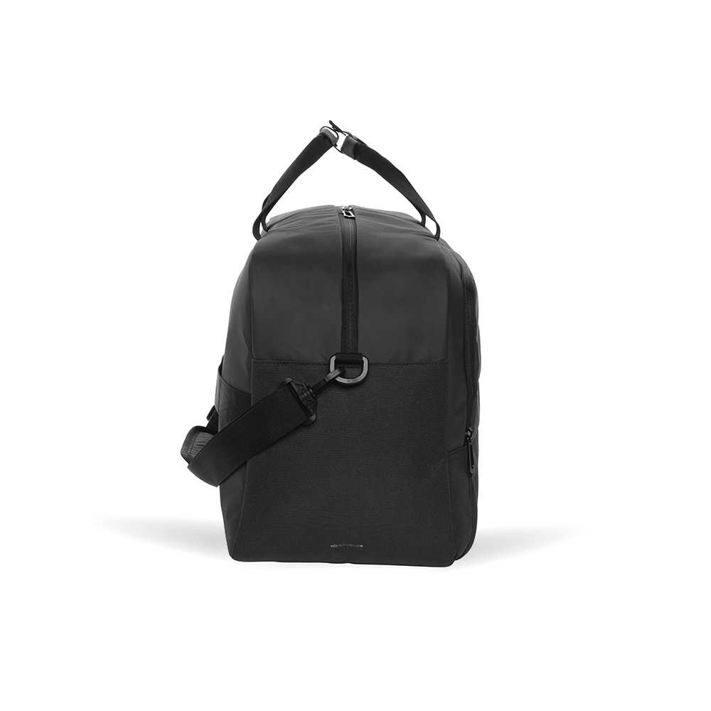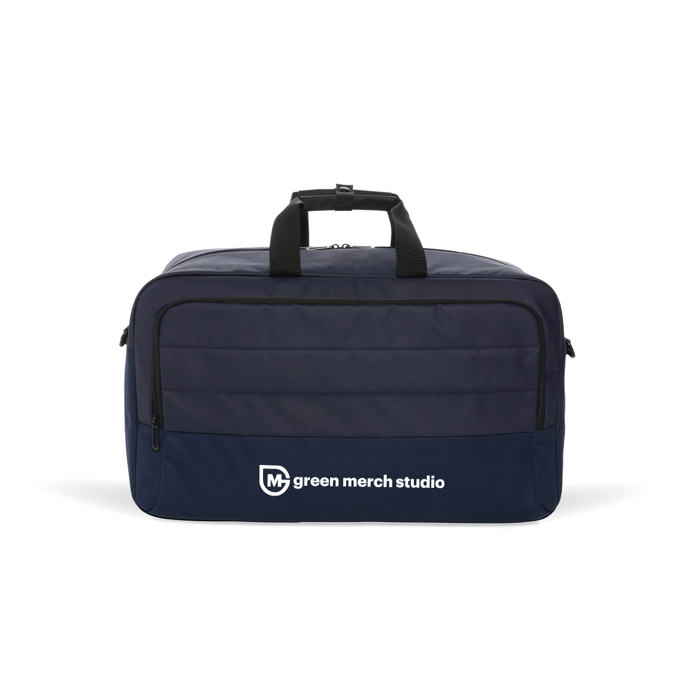 Gemaakt voor spontane trips en soepele weekends. Deze ruime weekendtas van gerecycled materiaal combineert praktisch gemak met een strak, stijlvol ontwerp. Ideaal voor onderweg, of je nu reist voor werk of ontspanning. Een tas met jouw verhaal? Wij brengen jouw merk er subtiel in terug.